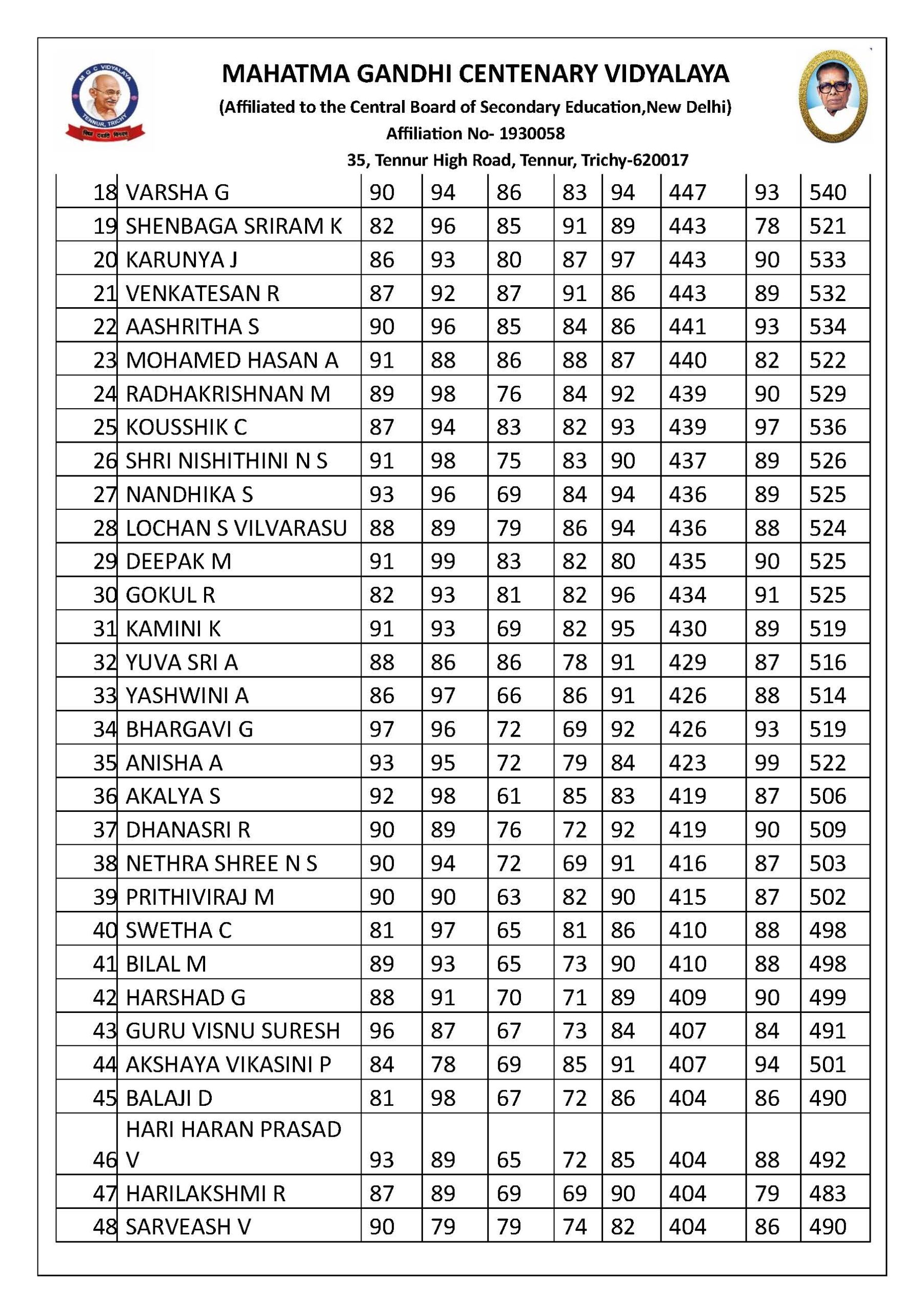 | 9 | MUTHU PRIYA M | 94 | 93 | 85 | 84 | 96 | 452 |