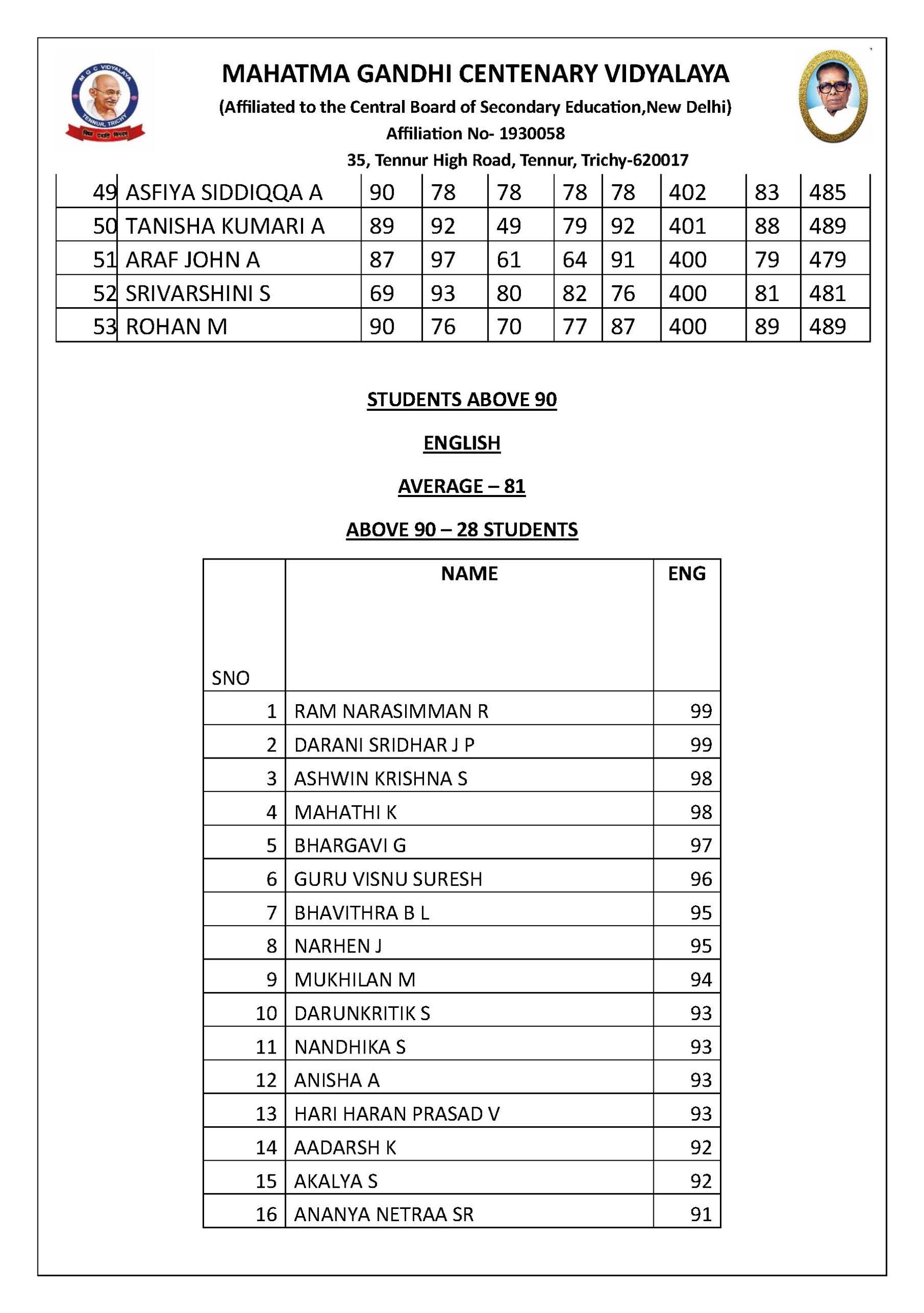 STUDENTS ABOVE 90