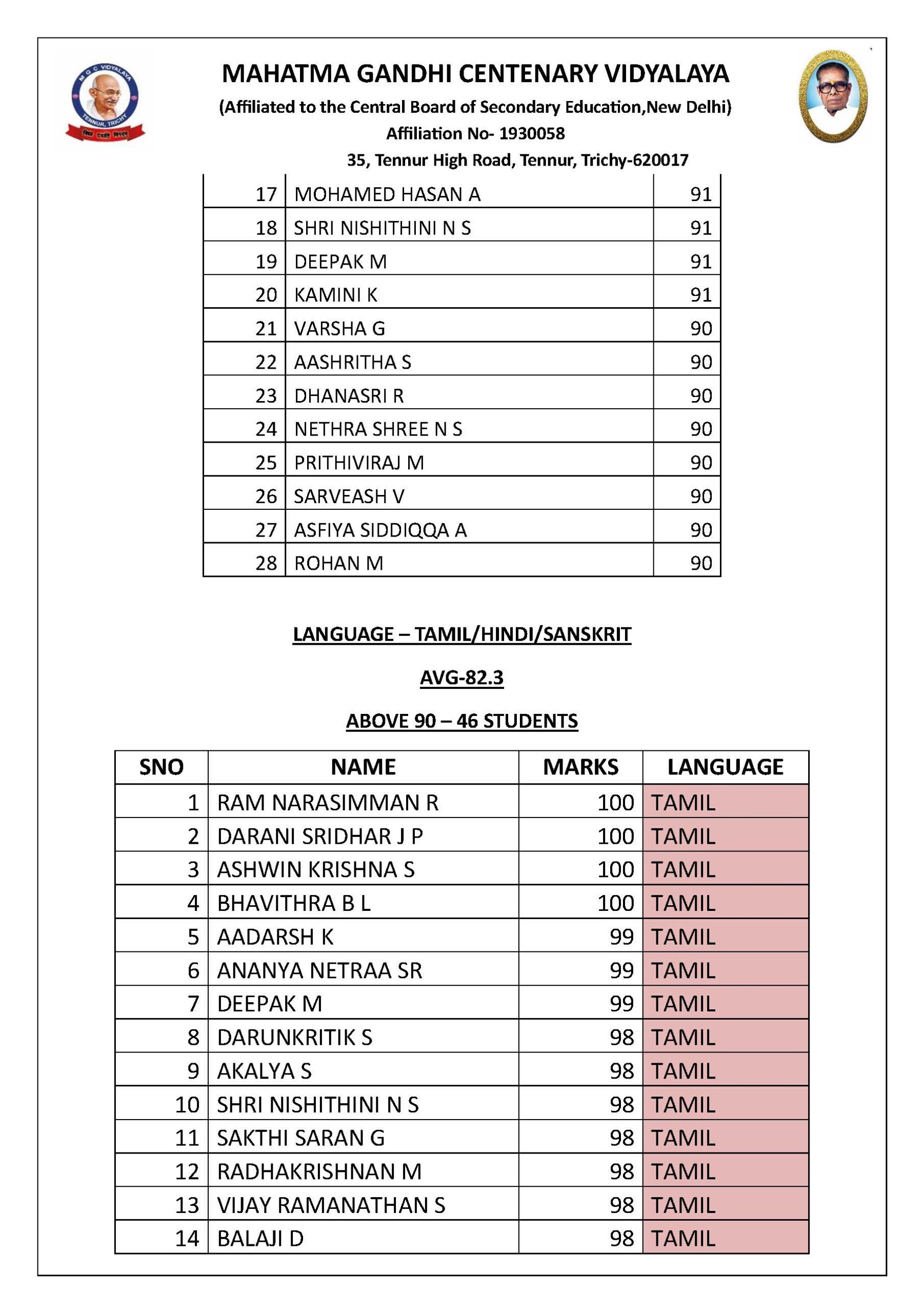 | 28 | LAKSHA SARINI R | 90 | TAM |